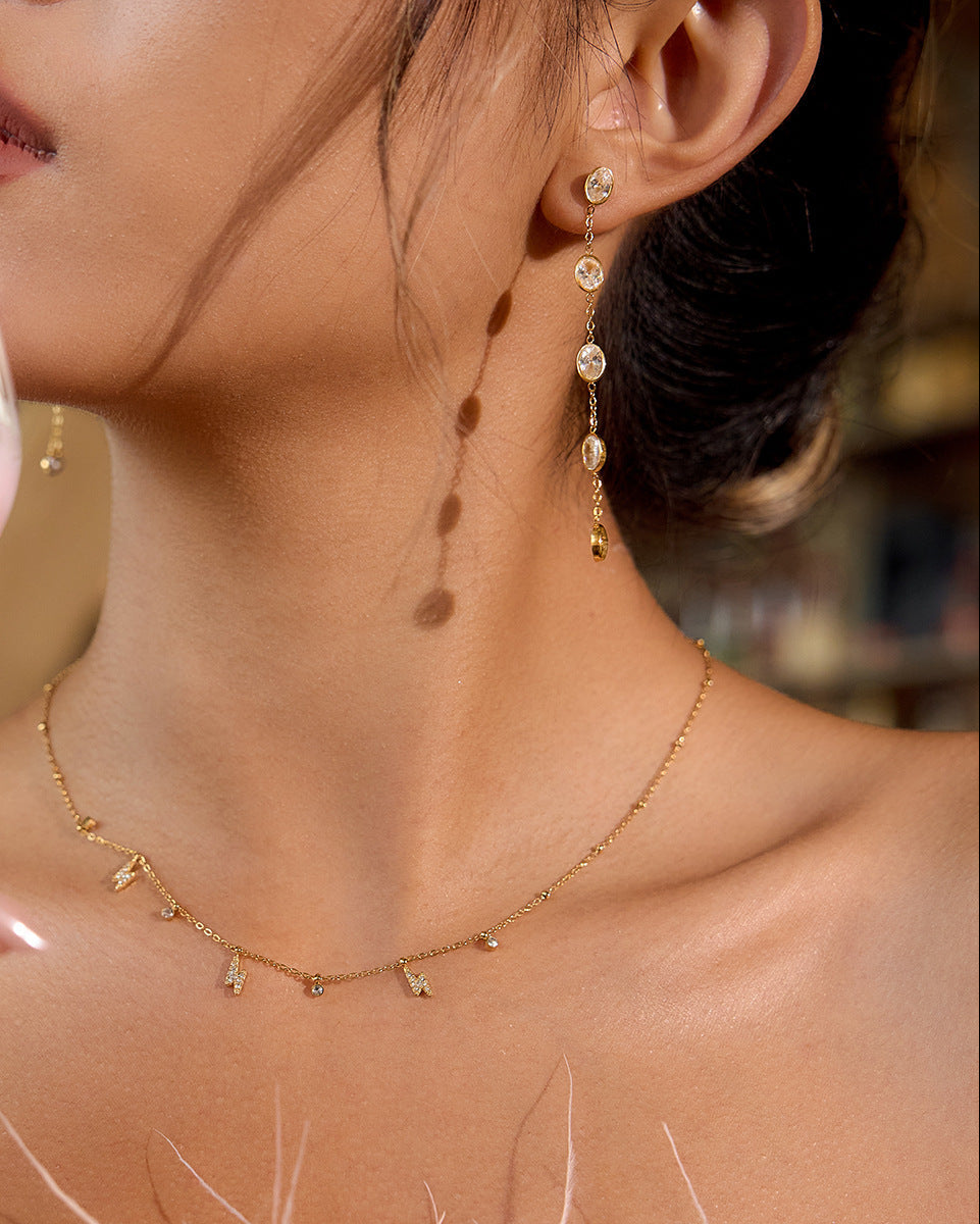 A sleek line of oval-cut crystals shimmers with graceful movement.