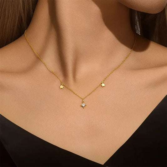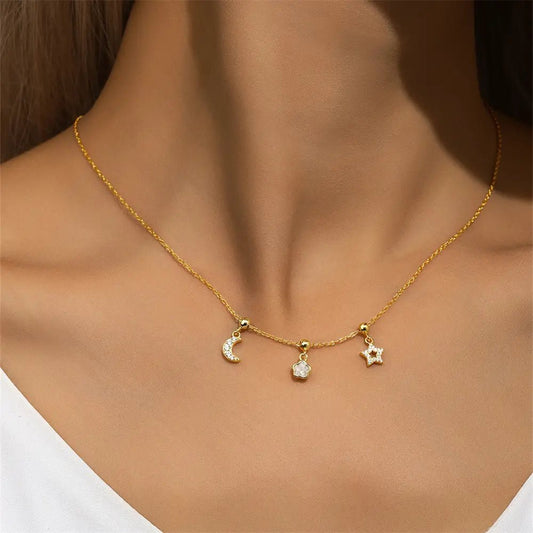 Adjustable Sterling Silver Moon and Star Multi-Wear Necklace