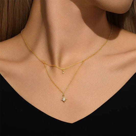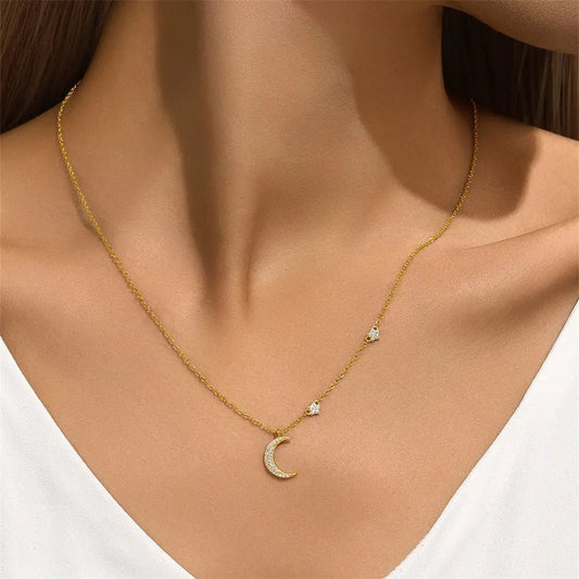 Sterling Silver Crescent Moon and Star Pendant Necklace