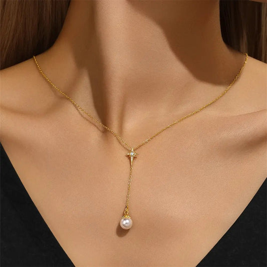 Sterling Silver Pearl Star Y-Shaped Necklace