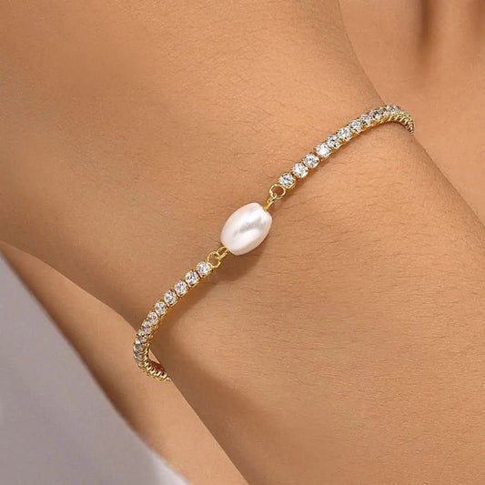 Zirconia and Pearl Tennis Bracelet