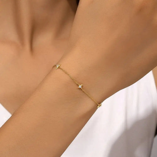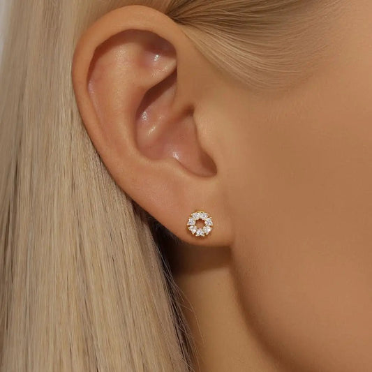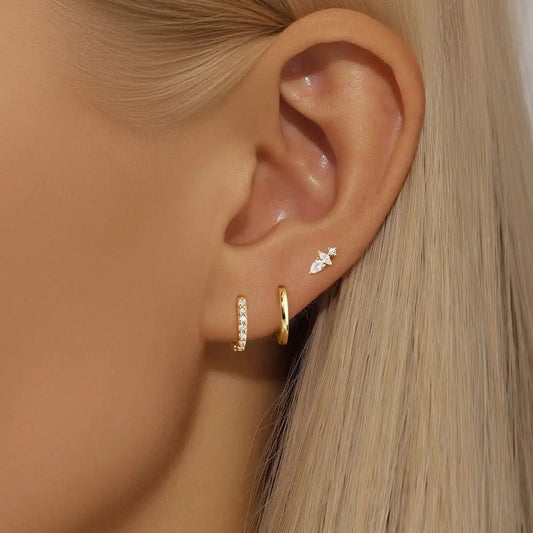 Star & Floral Chain Zircon Stud and Hoop Earrings Set
