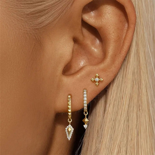 Geometric Flower Zircon Dangle Hoop Earrings Set