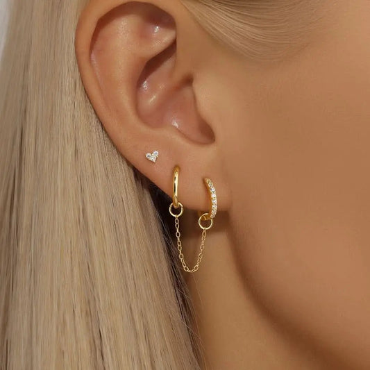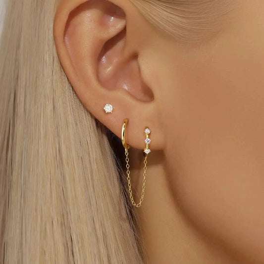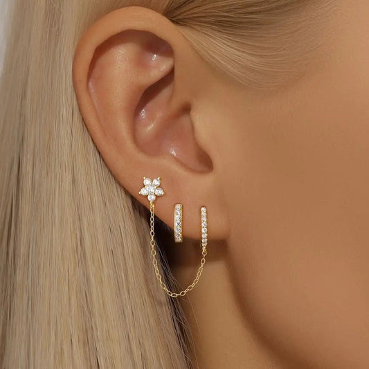 Star & Floral Zirconia Stud and Hoop Chain Earrings Set