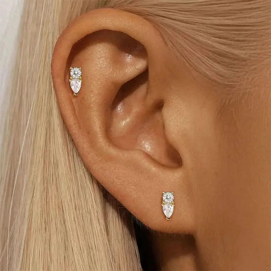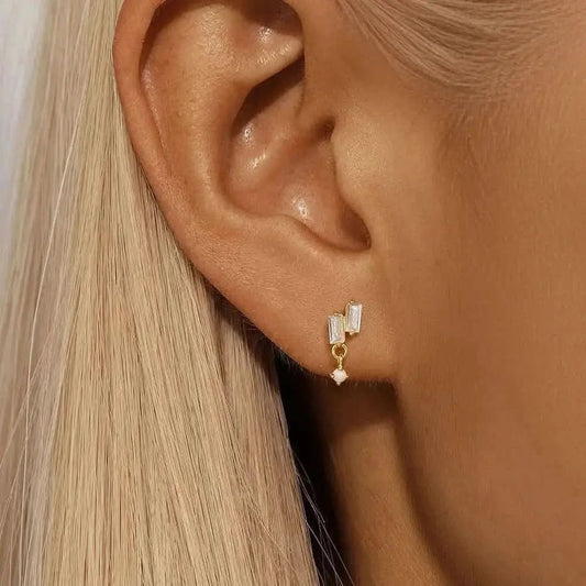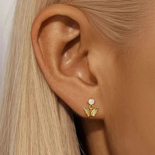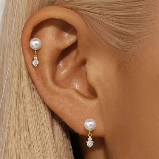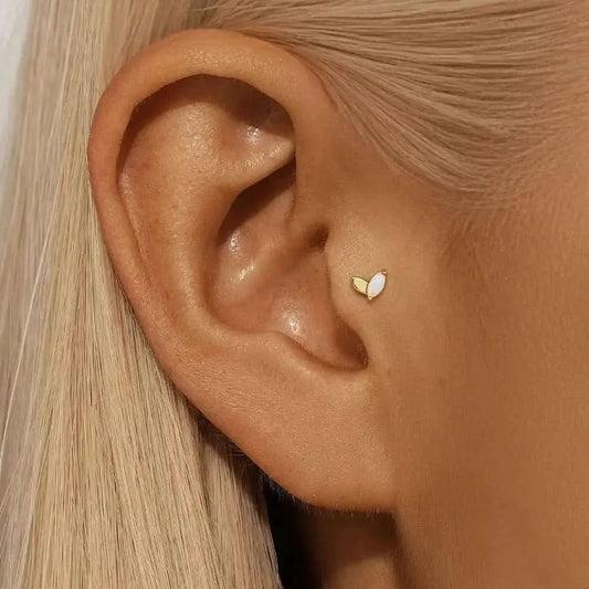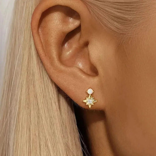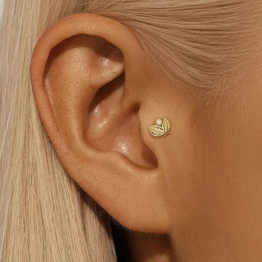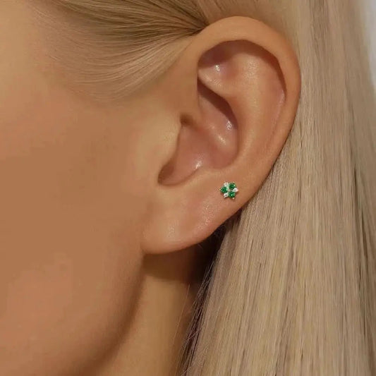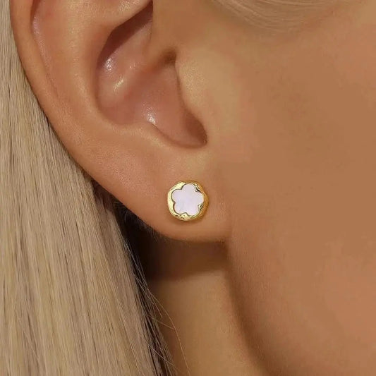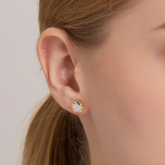 White Shell Flower Stud Earrings with Green Zircon Accent