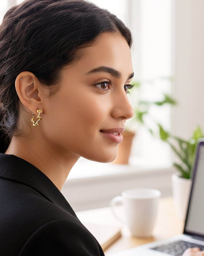 We believe everyone deserves affordable high-quality jewelry. Sterling silver is costly and high-maintenance, while brass fades and irritates skin. That’s why our co-founder Rui chose stainless steel with 18K gold plating—durable, waterproof, hypoallergenic, and perfect for everyday wear. Jewelry that looks luxurious, lasts through daily life, and stays accessible to all.