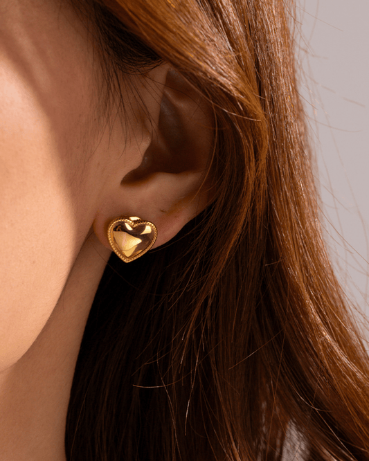 Golden Puff Heart Studs