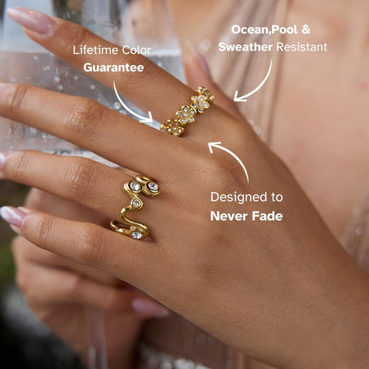 Wavy Gleam Crystal Ring