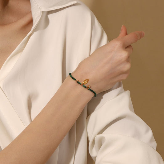Sacred Hamsa Beaded Bracelet – Malachite Green