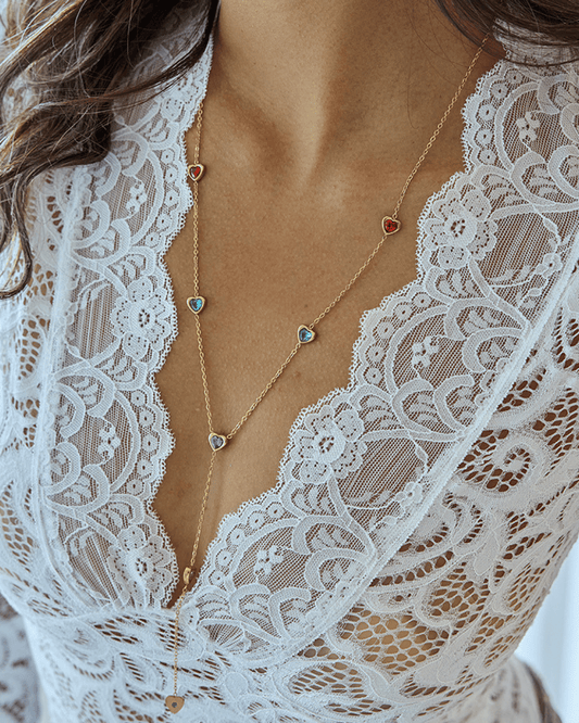 Golden Colorful Heart Y Necklace