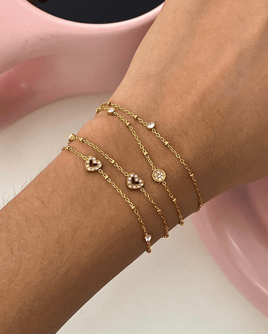 Golden Heart Crystal Dual Chain Bracelet