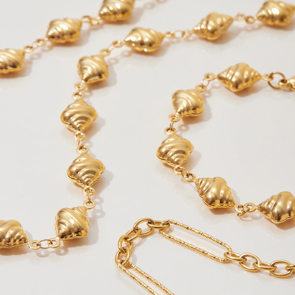 A perfect pairing to the necklace, the Golden Brioche Bead Bracelet features plump, buttery bead links that resemble tiny brioche buns—soft in shape, rich in golden tone. Delicate yet bold, this bracelet brings a charming twist to minimal gold jewelry. Waterproof, hypoallergenic, and never fading, it’s made to wear from brunch dates to sunset strolls. Add a bit of baked goodness to your wrist stack.