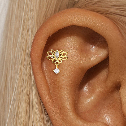 Lotus and Teardrop Zirconia Drop Stud Earrings