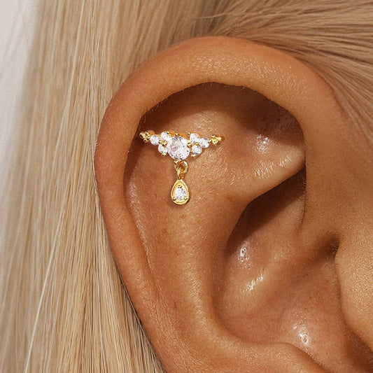 Starburst and Teardrop Zirconia Drop Stud Earrings