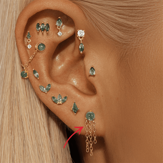Triple Moss Agate Leaf-Shaped Stud Earrings