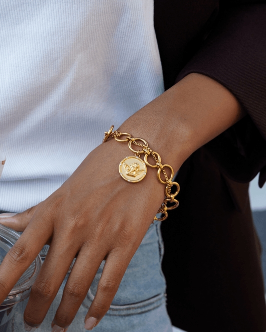 Golden Angel Medallion & Pearl Bangle Bracelet